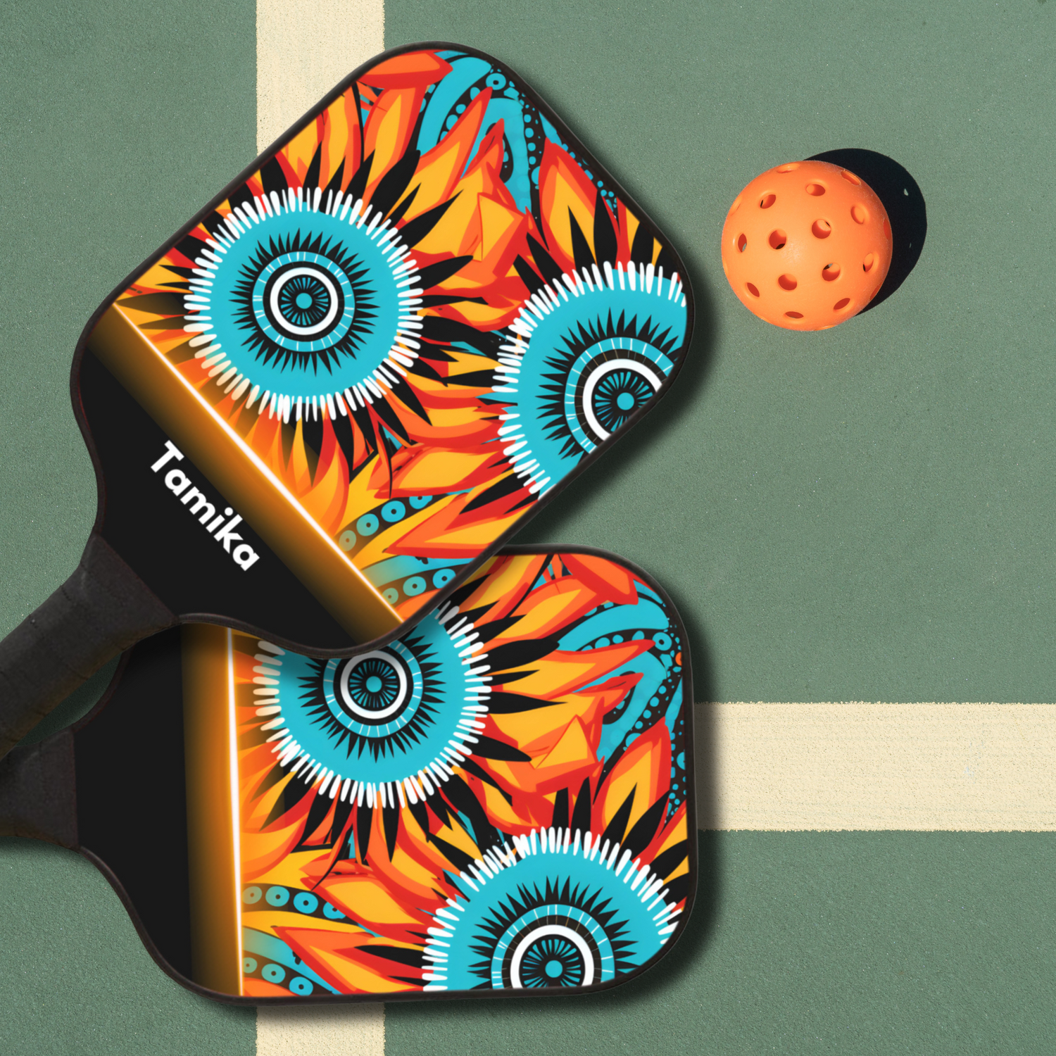 Zulu Zest, one of our paddles featured here, adds a pop of color to your game. Inspired by the vibrant culture of the Zulu people, this paddle features a captivating African print design that will electrify your play.